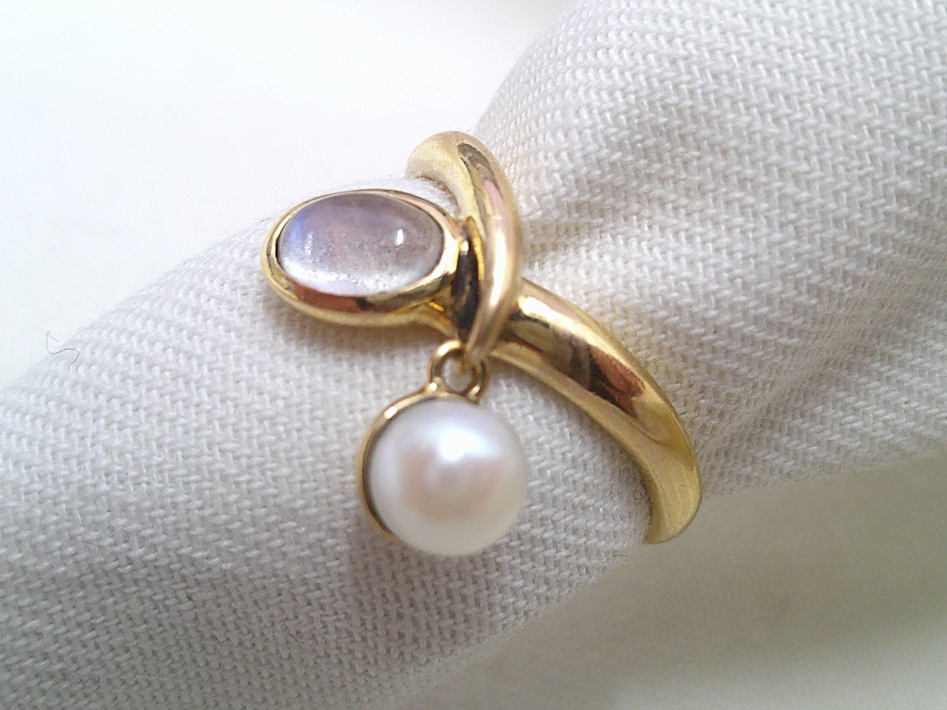 【K18/4℃(ヨンドシー)ムーンストーン×パール リングをお買取りしました|ジ…