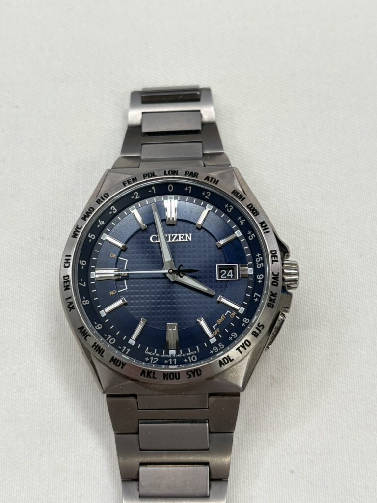 本日は、国内外で高い評価を受ける国産時計ブランド CITIZEN(シチズン)エコ・ドライブ ワールドタイムモデル をお持ち込みいただきました。 エコ・ドライブは光発電で動くシチズン独自の技術で、電池交換不要という利便性の高さから長年人気を集めています。 さらに今回のモデルは、世界各都市の時刻を瞬時に確認できるワールドタイム仕様。 ビジネスシーンから旅行まで幅広く活躍する実用性の高い一本です。