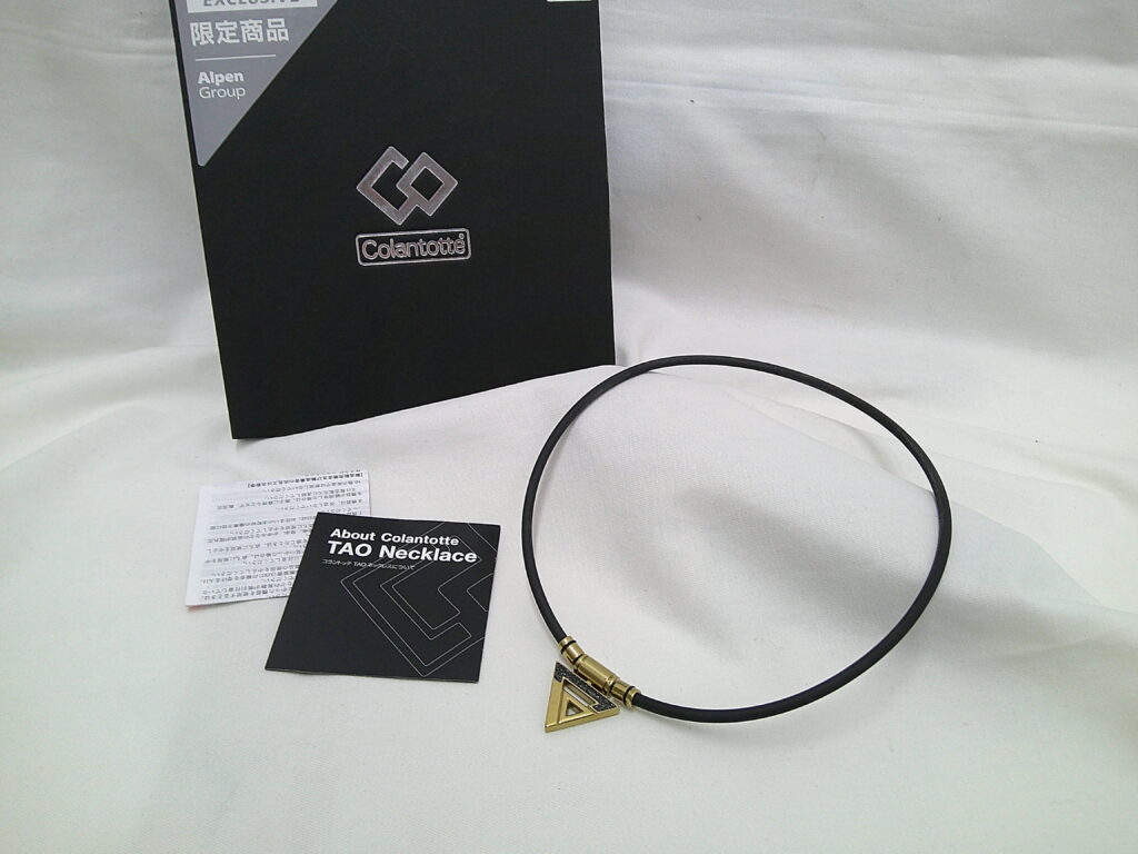 本日は、医療機器認証を受けた磁気アクセサリーブランド「Colantotte(コラントッテ)」の磁気ネックレスをお持ち込みいただきました。コラントッテは、独自のN極S極交互配列による磁気技術で血行改善をサポートするとされ、スポーツ選手や健康志向の方を中心に高い支持を集めています。