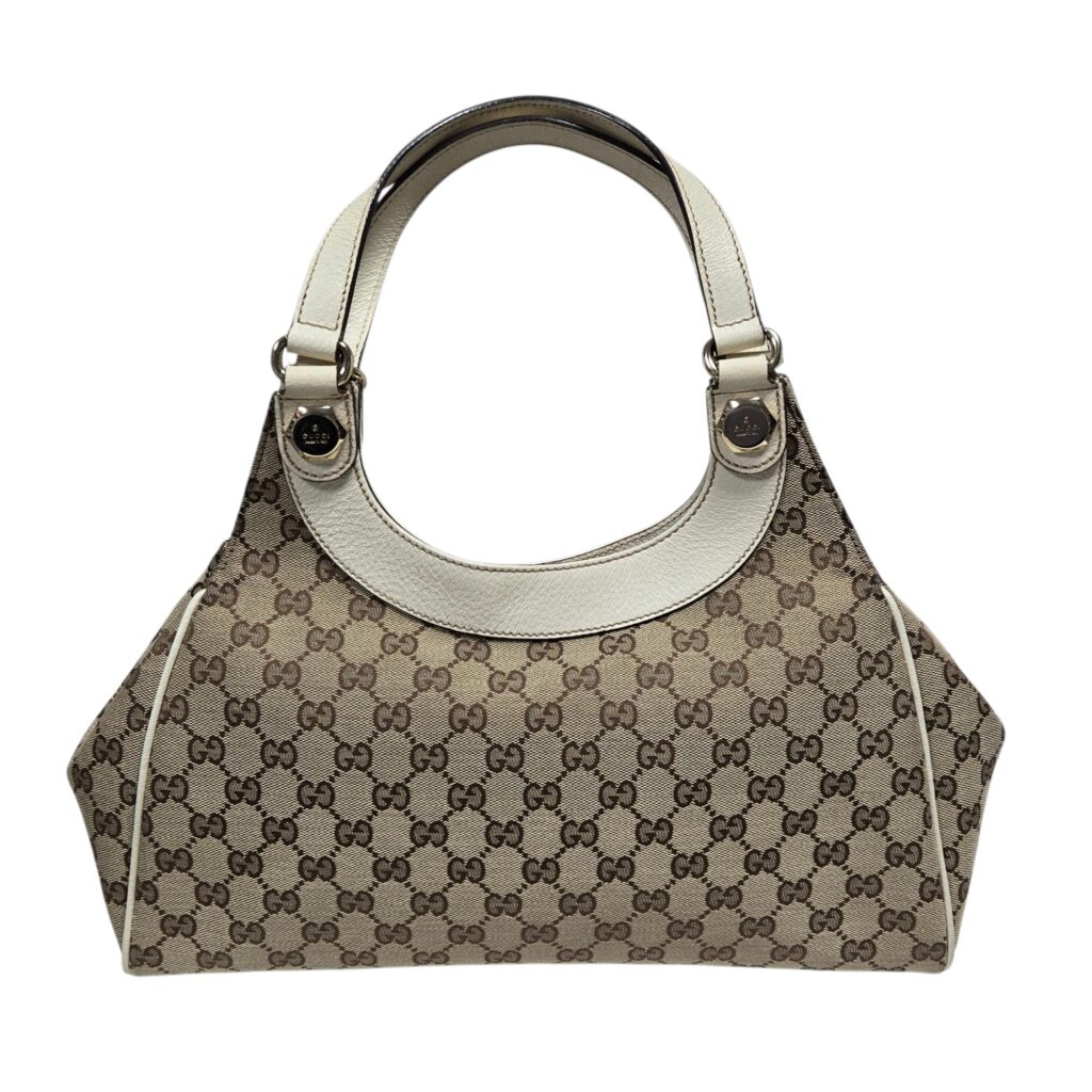 本日は、GUCCI(グッチ)の定番素材として長年愛され続けている「GGキャンバス」を使用した人気モデル〈154982〉をお持ち込みいただきました。クラシックなGG柄に上質なレザーを組み合わせたデザインで、ショルダーバッグとしてもハンドバッグとしても使える汎用性の高さが魅力です。