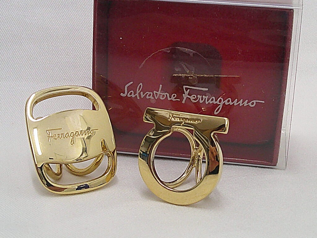 ゴールド調の輝きに、フェラガモのロゴがさりげなく。
