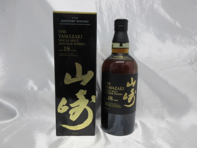 お持ち込みいただいたのは、山崎18年 シングルモルトウイスキー(箱付き)。